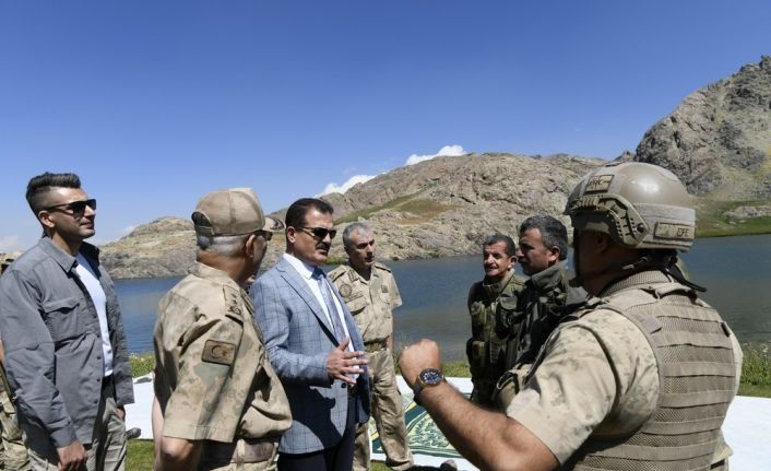 Komutanlar tarafından karşılanan Vali İdris Akbıyık, 3 bin 200 rakımında bulunan İkiyaka dağlarında vatan savunmasında bulunan asker ve güvenlik korucularıyla bir araya gelerek onlarla bir süre sohbet etti. Bölücü terör örgütüne karşı büyük başarılara imza atan güvenlik güçlerine görevlerinde başarı ve kolaylıklar dileyen Vali Akbıyık, daha sonra buradaki Göllerbaşı, Düztepe, Binbir Kapı ve 3 bin 365 Tepe Üs Bölgeleri’nde yapımı devam eden bina, kule ve güvenlik yollarını denetleyerek komutanlardan bilgi aldı. Dört mevsimin bir arada yaşandığı İkiyaka dağlarındaki Cilo Sat göllerini ve karla kaplı bölgeleri gezen Akbıyık, güvenlik güçlerinin başarılı operasyonları neticesinde bölücü terör örgütünden temizlenen bölgede artık dağcıların ve vatandaşların rahatlıkla piknik yaptıklarını söyledi.