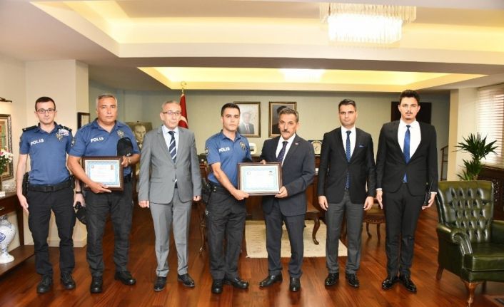 SAMSUN (İHA) – Samsun Valisi Osman Kaymak, boşandığı eşini ve 2 çocuğunu rehin alan şahsı etkisiz hale getiren Samsun Emniyet Müdürlüğünde görevli polis memurlarını başarı belgesi ile ödüllendirdi.