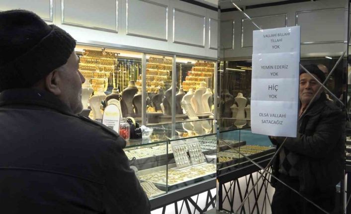 "Vallahi billahi yok, yemin ederim yok" yazısına rağmen müşterilerin ısrarı sürerken, esnaf ile vatandaşlar arasında gülümseten diyaloglar yaşandı. Bir müşterinin "Bir gram da mı yok?" sorusuna kuyumcunun "Yok abi, olsa kendime ayırırım" dediği anlar kameraya yansıdı.