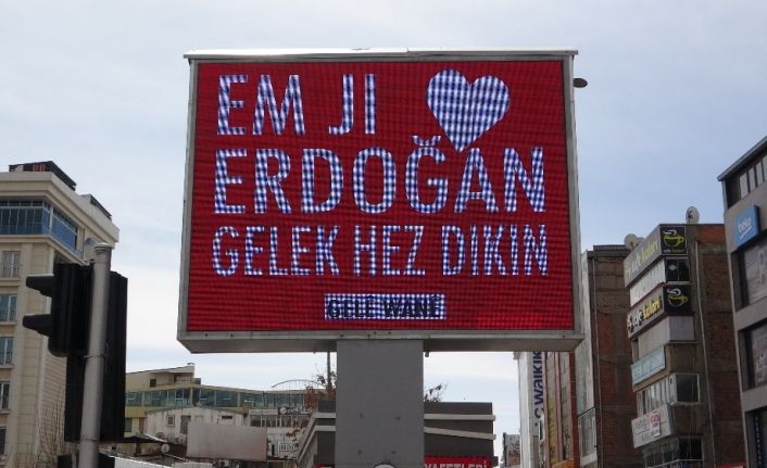 ABD’nin New York kentindeki reklam panosunda yer alan "Stop Erdoğan" ifadesine cevaben Van’daki led ekranlara 3 dilde "Erdoğan’ı seviyorum" görseli yansıtıldı.