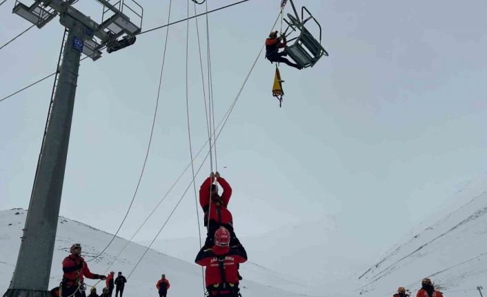 Senaryo gereği kayak merkezinde meydana gelen çığ nedeniyle elektrik kesintisi yaşanırken, telesiyejde 4 kişi mahsur kaldı. Olay yerine sevk edilen ekipler, telesiyejde mahsur kalanları güvenli şekilde tahliye ederek aşağı indirdi.