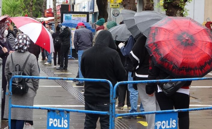 Virüse ve yağışa aldırış etmeden kuyruk oluşturdular