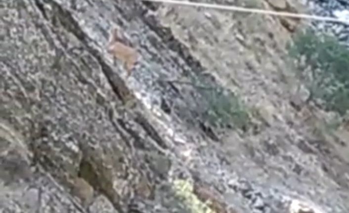 Hakkari’nin Çukurca ilçesinde sürü halinde Zap Nehri’ne su içmek için gelen yabani dağ keçileri görüntülendi.