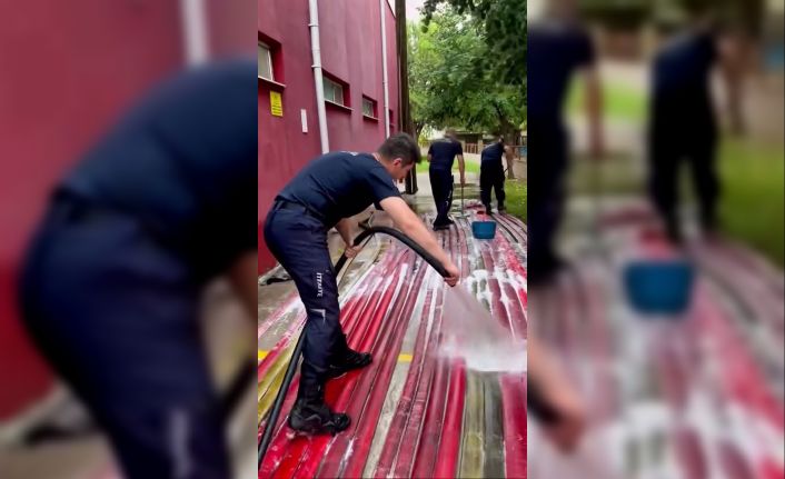 İtfaiyecilerin kendi elleriyle gerçekleştirdiği temizlik çalışması sosyal medyada da paylaşılırken, vatandaşlardan da büyük beğeni topladı.