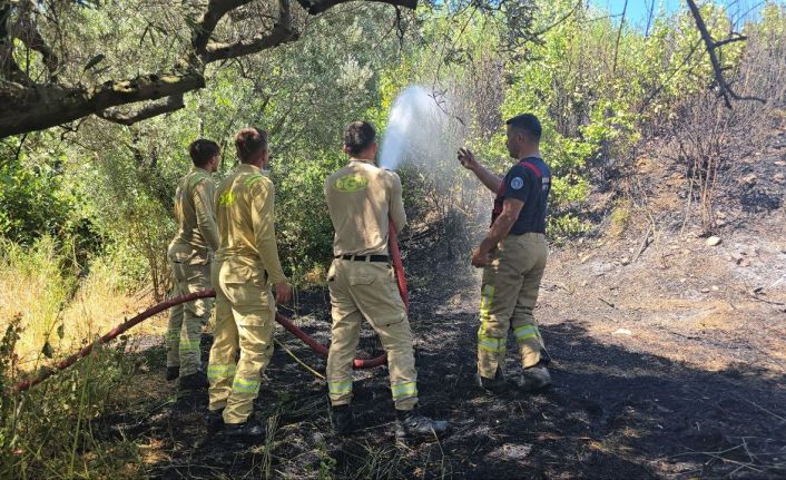 Bursa’nın Mudanya ilçesi Göktepe mevkiinde çıkan yangında yaklaşık 8 dönümlük zeytinlik ve çalılık alan zarar gördü. Alevlerin buğday tarlasına ulaşması son anda engellendi.
