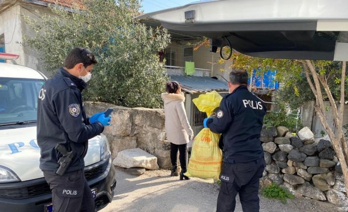 Yeni tip korona virüs nedeniyle 65 yaş üstü vatandaşlara sokağa çıkma yasağı ilan edilince ihtiyaçlarını gideremeyen vatandaşların imdadına polis yetişip temel gıda paketi dağıttı.