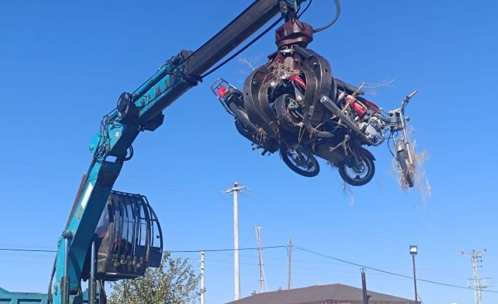 Yediemin otoparkında bekletilen yüzlerce motosiklet geri dönüşüme gönderildi