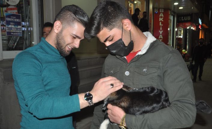 Vatandaşların en yoğun olduğu caddede kucağında oğlağı taşıyan Onay, yoldan geçenlerin ilgisini çekerek, bazıları ise oğlakla fotoğraf çektirdi.