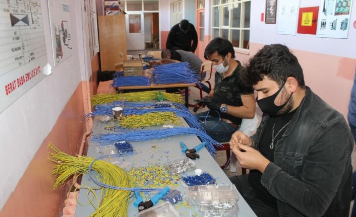 Çankırı Mesleki ve Teknik Anadolu Lisesi öğretmen ve öğrencileri tarafından hummalı bir çalışma yürüterek korona virüsle mücadele kapsamında yeni yapılacak hastanelerin yoğun bakım ünitelerindeki elektrik panoları ve oksijen regülatörlerinin montajlarına başlandı. Yaklaşık 5 bin adet üretilecek olan elektrik panolarında günlük 300 adet üretim yapılırken 24 bin oksijen regülatörünün de montajını tamamlayacak. Ekip, korona virüs tedbirleri kapsamında aldıkları önlemlerle çalışmalarını sürdürüyor.