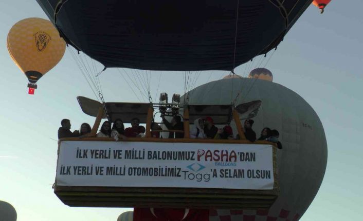 Nevşehir’de yerli ve milli üretimi yapılan balon firması, bu gün banttan inecek olan ilk yerli ve milli otomobil TOGG’a gökyüzünden selam gönderdi.