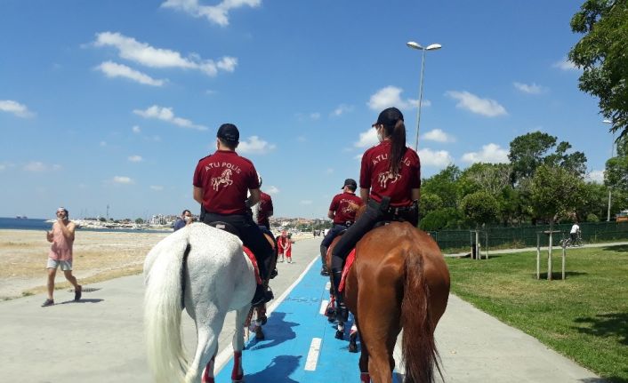 Sahillerde hareketliliğin artmasıyla birlikte atlı birlikler Yeşilköy Sahili’nde devriye gezdi. Sahilde büyük ilgi gören atlı birlikler yaşanabilecek olumsuzluklara karşı devriye atarken ekipler maske takmayan vatandaşları uyardı.