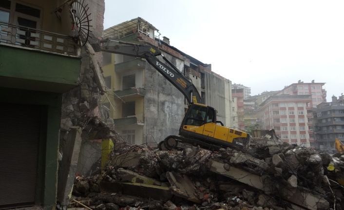Rize’de kamulaştırıldıktan sonra yıkımı devam eden binanın hafriyatı bitişikteki binanın duvarını delince, molozlar ev sahibinin yatak odasına doldu.