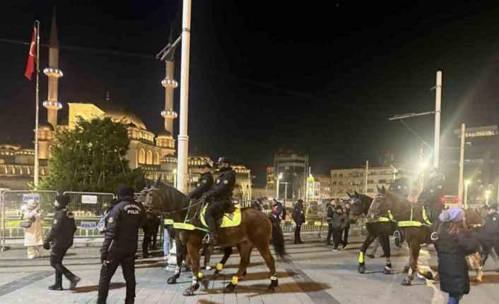 Beyoğlu ilçesinde yılbaşı tedbirleri kapsamında İstiklal Caddesi’ne girişte yoğun güvenlik önlemleri alındı. İstanbul Emniyet Müdürlüğü ekipleri tarafından alınan tedbirler kapsamında atlı polisler de devriye attı. Turistler ve vatandaşlar tarafından fotoğrafları çekilen atlı polisler gece boyunca devriye görevini yürütecek.