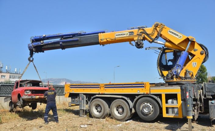 Yıldırım Belediyesi, ilçede terk edilmiş durumda bulunan ve görüntü kirliliği oluşturan hurda araçları kaldırıyor.