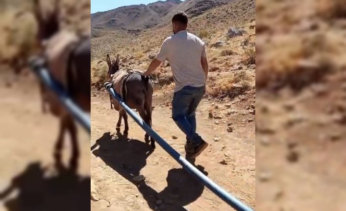 BİTLİS (İHA) – Bitlis’in Yolalan Belde Belediyesi tarafından yürütülen içme suyu hattı çalışmasında iş makinelerinin gidemediği bölgelerde malzemeler eşeklerle taşınıyor.