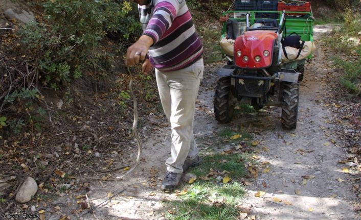 Edinilen bilgiye göre, Halkapınar ilçesinde belediye çalışanı olan ve çiftçilik yapan Bülent Fakı Şengün, bahçe motoru ile tarlaya gittiği sırada yolda yılan gördü. Gördüğü yılanı eli ile kuyruğundan yakalayan Şengün, daha sonra yılanla oynadı. “Sen nasıl tatlı bir şeysin” diyerek yılanla oynayan Şengün, bir süre sonra yılanı serbest bıraktı.