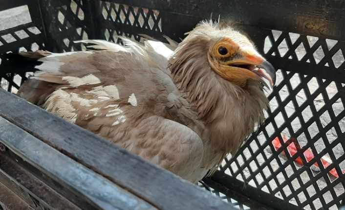 Adıyaman’da elektrik tellerine çarparak yaralanan Mısır akbabası tedavi altına alındı.