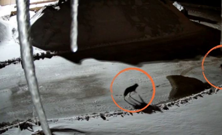 Hakkari’nin Yüksekova ilçesinde Esendere yolu üzerinde bulunan maden tesisine giren iki kurt güvenlik kamerasına yansıdı.