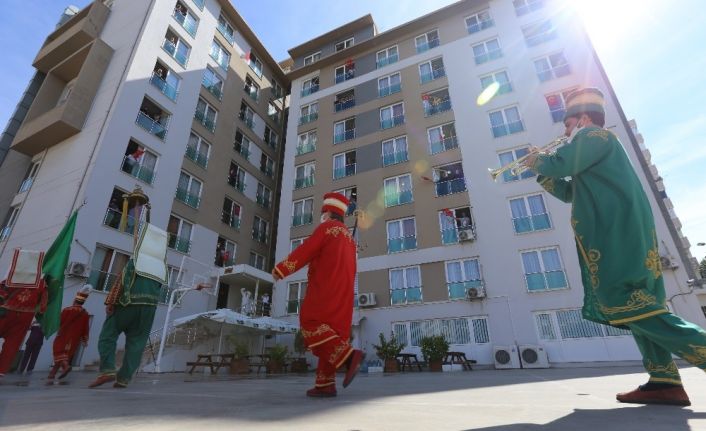 Yurtta karantina süresi tamamlananlar Mehter Marşı ve fidanlarla uğurlandı