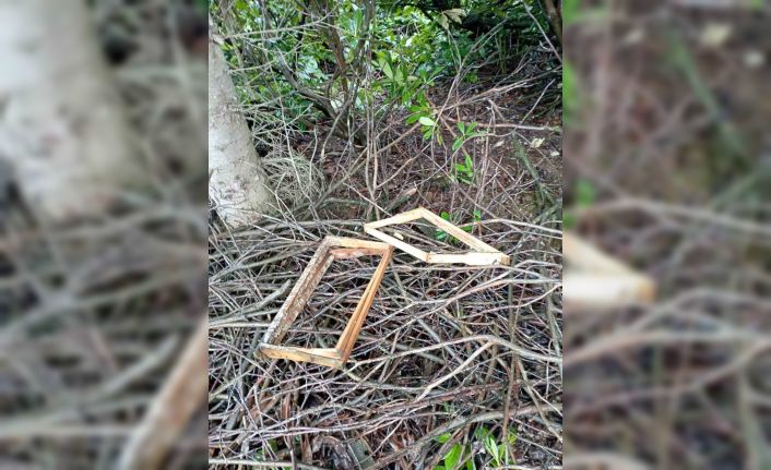 Giresun’un Bulancak ilçesinin Bektaş Yaylası Kartepe Sırganlı mevkiinde ayılar kovanları parçalayarak peteklerdeki balları yedi.