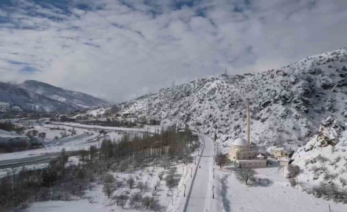 Giresun’un İç Anadolu Bölgesi’ne yakın en uzak ilçelerinden biri olmasıyla dikkat çeken Çamoluk, meteorolojik uyarıların ardından başlayan kar yağışıyla beyaza büründü. Dağların arasında ve Kelkit Irmağının her iki yakasında kurulan ilçe merkezi doğal güzellikleriyle dikkat çekti. Kar yağışıyla beyaza bürünen ilçe gündüz ayrı, akşam ayrı bir güzellik sundu. Evlerin ışıkları, karla birleşerek görülmeye değer manzara oluşturdu. Kar manzarası, dron kamerasıyla görüntülendi.