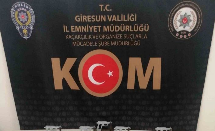 Giresun İl Emniyet Müdürlüğü, Kaçakçılık ve Organize Suçlarla Mücadele Şube Müdürlüğü ekipleri ile kurulan irtibatın ardından şüpheli il merkezine yakın uygulama noktasında durduruldu. Araçta arama yapmaya başlayan KOM ekipleri araç içerisinde gizli bölmelerde poşetlenmiş halde 15 adet metal gri renkli tabanca gövdesi, 15 adet metal gri renkli tabanca sürgüsü, 15 adet metal renkli pas kırıntıları olan, yiv ve set açılmış tabanca namlusu, 14 adet tabanca iğnesi, 15 adet silah parçası olarak değerlendirilen yüzük, 15 adet horoz, ve 119 adet silah yapımında kullanıldığı değerlendirilen metal parçalar ele geçirildi. Gözaltına alınan araç sürücüsü şüpheli F.H. emniyetteki işlemlerinin ardından çıkarıldığı mahkeme tarafından tutuklandı.