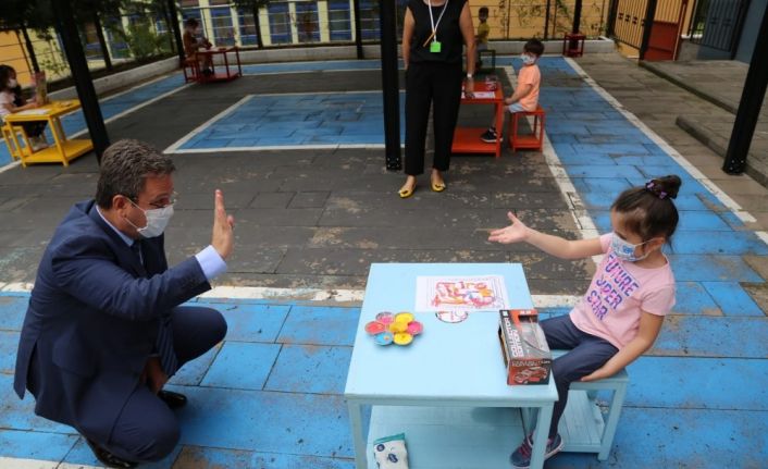 Giresun Valisi Enver Ünlü, 2020-2021 eğitim-öğretim yılının açılışı nedeniyle Giresun Merkez Yeşilgiresun İlkokulu ve Fındıkyurdu Anaokulunu ziyaret etti. Yeni Korona virüs Hastalığı nedeniyle bu yıl yüz yüze ve uzaktan eğitim şeklinde uygulanacak olan yeni eğitim-öğretim yılının açılışını birinci sınıf öğrencilerinin katılımıyla; temizlik, maske ve sosyal mesafe kurallarına uygun olarak Yeşilgiresun İlkokulu’nda gerçekleştiren Vali Ünlü, çocuklara çikolata ikram ettikten sonra Fındıkyurdu Anaokulu’na geçerek buradaki minik öğrencilere oyuncak hediye etti.