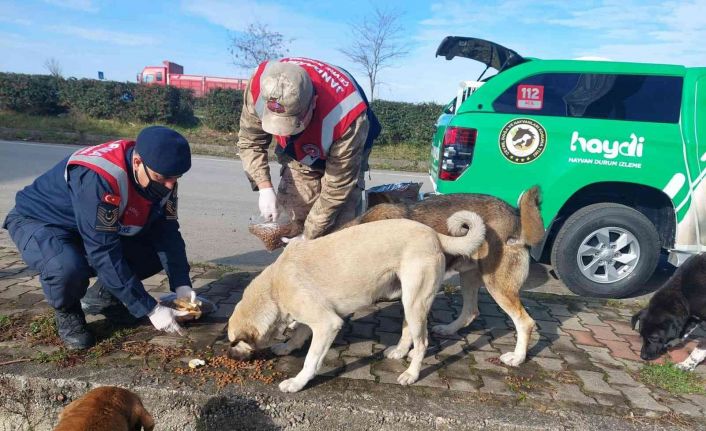 Giresun İl Jandarma Komutanlığına bağlı ekipler, kış mevsiminde yiyecek bulmakta zorlanan sokak hayvanlarını besledi ve yaralı hayvanların tedavilerini yaptı.
