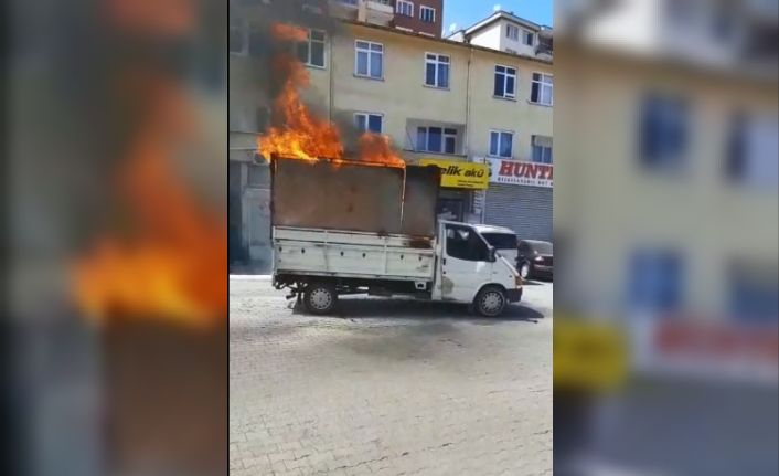 Olay, Giresun Organize Sanayi Sitesinde meydana geldi. Edinilen bilgiye göre, aracın arkasında bulunan içi karton dolu kamyonet henüz belirlenmeyen bir nedenden yanmaya başladı. Çevredeki vatandaşların uyarması üzerine aracı kenara çeken şoför önce araçtan indi, ardından durumu itfaiye ekiplerine bildirdi. İtfaiye ekipleri olay yerine gelinceye kadar yangına çevredeki vatandaşlar ve sanayi sitesindeki esnaf müdahale etti. Öte yandan aracın alevler içinde kalması vatandaşların cep telefonlarına saniye saniye kaydedildi.