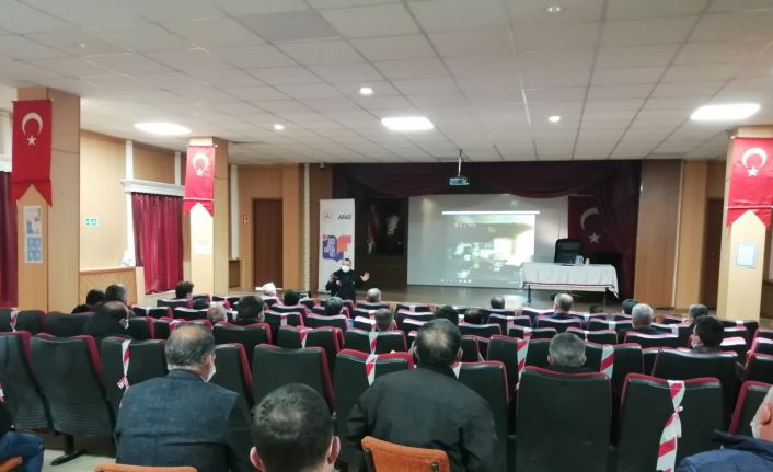 Pandemi kuralları çerçevesinde gerçekleşen seminerlerde AFAD yetkilileri tarafından muhtarlara ve azalara olası deprem, heyelan ve benzeri durumlarda ilk olarak neler yapılacağını, muhtarların böyle zamanlarda neler yapması ve hangi yollara başvurmaları gerektiği slaytlar aracılığıyla anlatılıyor.