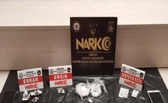 Giresun Cumhuriyet Başsavcılığı koordinesinde yapılan çalışma sonucunda G.D., H.K. ve S.K. isimli şüpheli şahıslardan 43 adet perge hap, 0,8 gram esrar maddesi, 2 adet cam aparatı (bong) ele geçirildi.