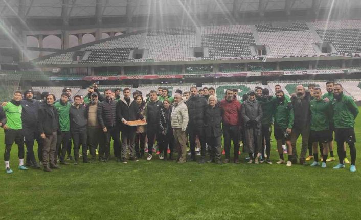 Giresunspor’u takip eden spor muhabirleri, Çotanak Spor Kompleksi’nde yapılan antrenman öncesi takıma baklava ikram edip, destek verdi. Giresunspor Teknik Direktörü Hakan Keleş, yapılan bu anlamlı ziyaretten duydukları memnuniyeti ifade ederek, spor muhabirlerine Giresunspor’a verdikleri desteklerden dolayı teşekkür etti.