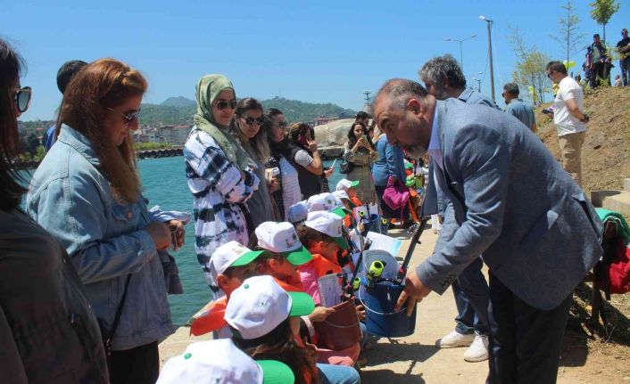 Giresun’un Görele ilçesinde Liman Başkanlığı tarafından düzenlenen “Minik elleri deniz ve olta ile buluşturuyoruz” şenliğinde çocuklara olta takımı dağıtıldı.