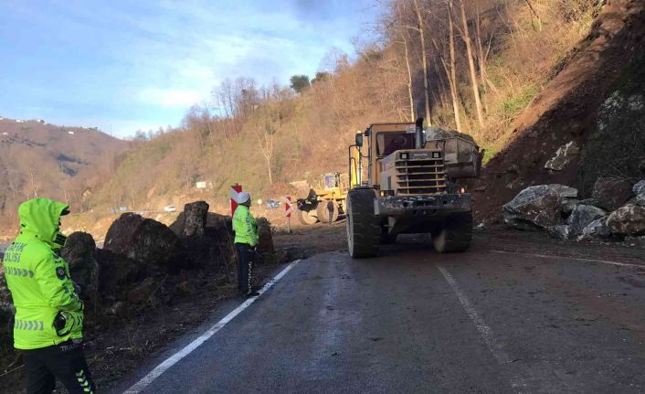 Giresun’u Dereli ve Şebinkarahisar ilçelerine bağlayan karayolunda meydana gelen heyelan karayolları ekiplerinin çalışmasıyla temizlendi.