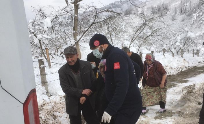 Giresun’da kar yüzünden köylerinde mahsur kalan hastaların imdadına 112 ekipleri yetişiyor.