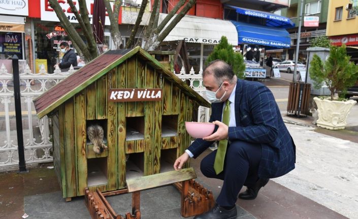 Giresun’un Görele ilçesinde belediye tarafından ilçenin çeşitli noktalarına sokak hayvanları için ‘kedi villa’ ismi verilen kedi kulübesi, su ve mama kapları yerleştirildi.