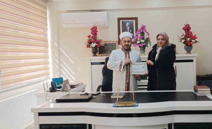 ALMANYA'DAN GELEN MİYA EYNESİL'DE, İLÇE MÜFTÜLÜĞÜ TARAFINDAN DÜZENLENEN İHTİDA MERASİMİ İLE İSLAM'I SEÇTİ.