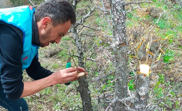 Giresun’un Alucra ilçesinde imam İlyas Durmuş, doğadaki yabani ağaçları meyve vermesi için gönüllü olarak aşılıyor.