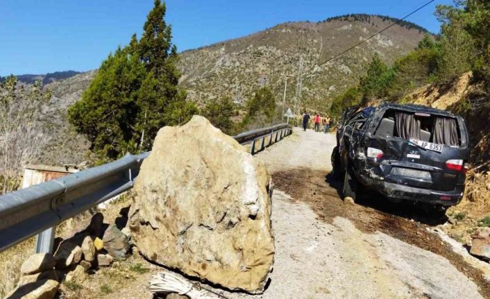 Gümüşhane’de kaya düşme riski bulunan alanlarda tel örgü çekme işlemi yapan işçilerin bulunduğu minibüs uçuruma yuvarlandı. Kazada 2 işçi yaralandı.