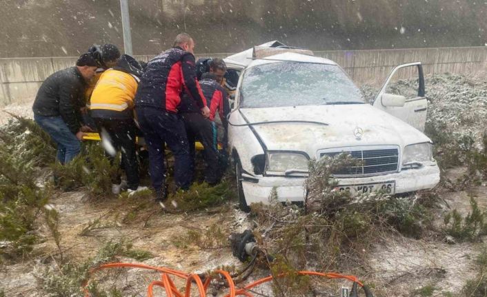 Gümüşhane’de sürücüsünün direksiyon hâkimiyetini kaybettiği otomobil refüje çıktı. Kazada 2 kişi yaralandı.