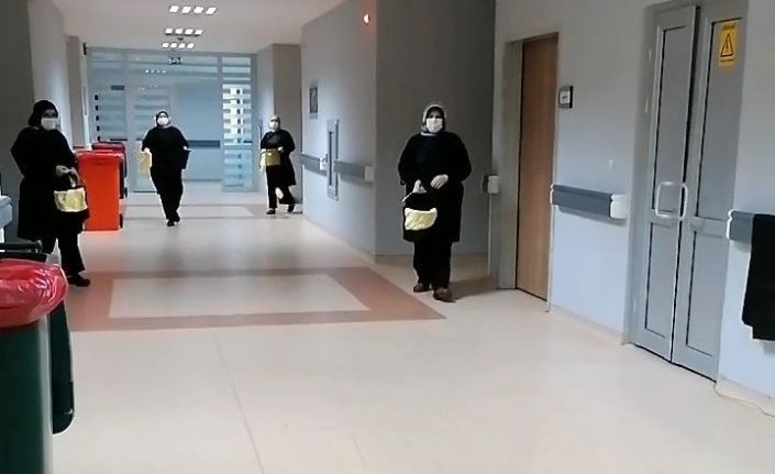Korona virüs salgını nedeniyle temizlik personeline süpriz hazırlayan sağlık çalışanları, en büyük yardımcılarından birisi olan temizlik görevlilerine çalışmalarından dolayı teşekkür ederek alkışladı.
