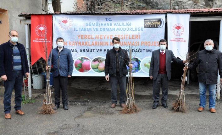 Gümüşhane’de yerel meyve çeşitlerinin korunması için çiftçilere 4 bin adet elma, armut ve erik fidanı dağıtıldı.