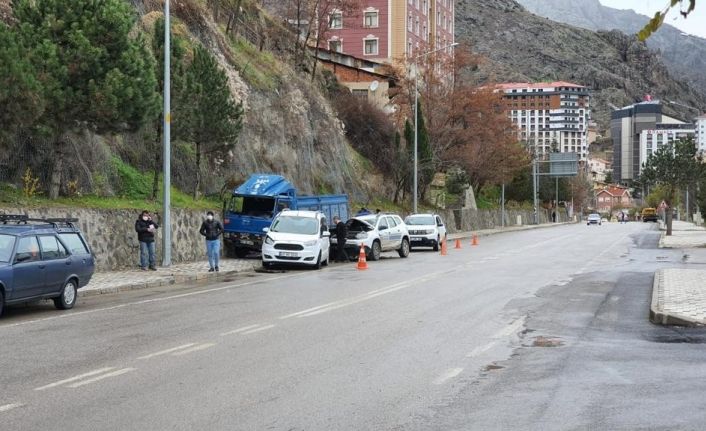 Gümüşhane’de kaldırıma park eden kamyonete arkadan çarpan aracın sebep olduğu zincirleme kazada 4 araçta maddi hasar meydana geldi.