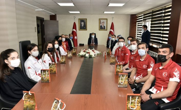 Gümüşhane’de çeşitli dallarda mücadele eden milli sporcular 19 Mayıs Atatürk’ü Anma, Gençlik ve Spor Bayramı etkinlikleri kapsamında Vali Taşbilek’i ziyaret etti.