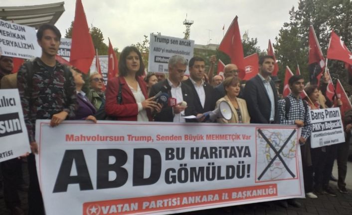 ABD Başkanı Donald Trump’ın sosyal medyadan "Türkiye’yi mahvederim" diyerek savurduğu tehdidi protesto etmek ve Fırat’ın doğusuna başlayan Barış Pınarı Harekâtına destek olmak amacıyla Vatan Partisi Genel Sekreteri Utku Reyhan, ABD Büyükelçiliği önünde basın açıklaması gerçekleşti.