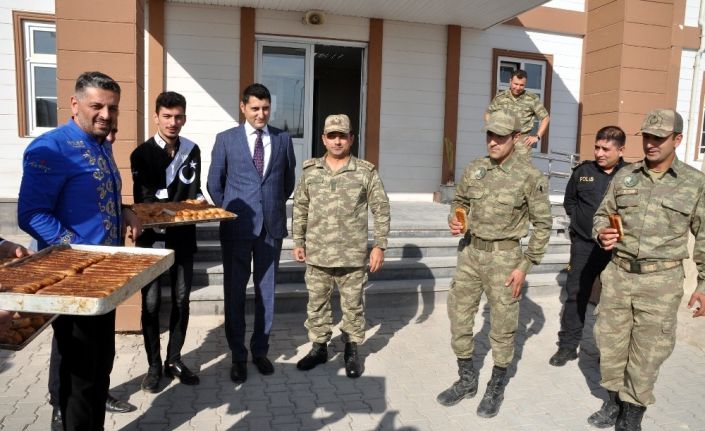 Şehit aileleri ve esnaflar kendi elleriyle Mehmetçiğe börek ikramı yaptı.