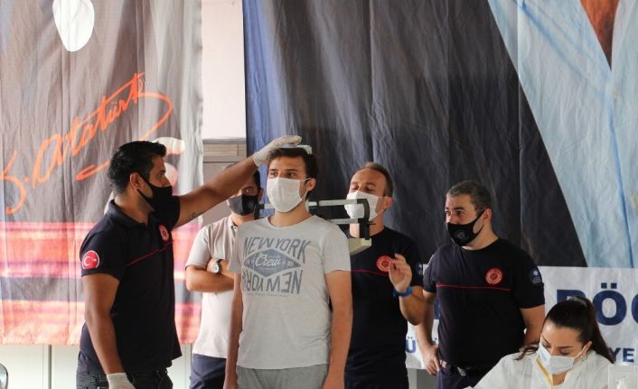 Sabah mesai saati başlamasıyla yerleşkede sıraya giren adayların HES kodu sorgulandı ve ateşleri ölçülerek içeriye alındı. Boy ve kilo ölçümleri yapılan adayların daha sonra sosyal mesafe kuralına uygun olarak dizayn edilen masalarda başvuruları alındı. Her adayın ölçümlerinin yapılmasının ardından alan ekiplerce dezenfekte edildi.