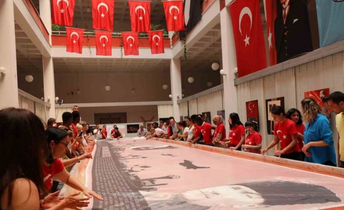 Geleneksel Sanatlar Bölümü Başkanı ve etkinlik küratörü Doç. Dr. Mehmet Ali Eroğlu, “15 Temmuz, Türk halkının demokrasiye ve milli birliğe olan bağlılığını dünyaya duyurduğu gündür. Yüce Türk milletinin tek yürek olduğu ve milli birlik ruhunun doruğa çıktığı bugünde sadece bir ebru etkinliği ya da sanatsal faaliyet için toplanmadık. Bugün burada 251 şehidimizi anmak ve 15 Temmuz’u unutmadığımızı ve unutturmayacağımızı göstermek için buradayız. Bu bağlamda 15 Temmuz’u konu alan 15 metre uzunluğunda yapılacak olan ebru çalışması için 50 tüp boya, 4,5 ton su, 30 kutu kitre kullanılmıştır. Ekibimizle bir haftada çalışmayı tamamlamış bulunmaktayız. Ayrıca bu etkinliğimizin yanı sıra 251 şehidimizi temsilen sanatçıların eserlerinden oluşan uluslararası katılımlı bir sergide hazırladık” dedi.