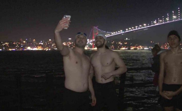 Üsküdar Kuzguncuk sahilinde bir araya gelen yüzücüler, Boğaz’ın soğuk sularına atlayarak 2025’i kutladı.