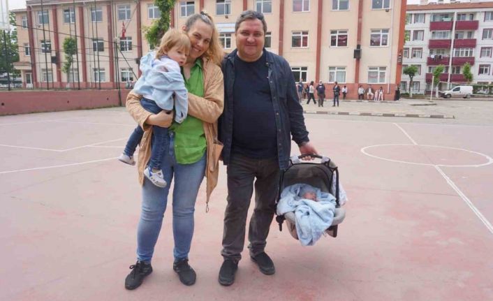 Edirne’de Cumhurbaşkanlığı ikinci tur seçimlerinde oy kullanmak için puset içinde 25 günlük bebeği ve 18 aylık oğlu Ekin Uzay ile birlikte Alper Yazoğlu Orta Okulu’na gelen Ceyhun ve Nazlı Danış çifti, heyecan ve mutluluğu bir arada yaşadı. 2 çocuğunun da ilk kez seçim gördüğünü ve demokrasiye şimdiden alıştırmak için onlarla birlikte geldiklerini söyleyen çift, seçimlerin hayırlı olmasını diledi.